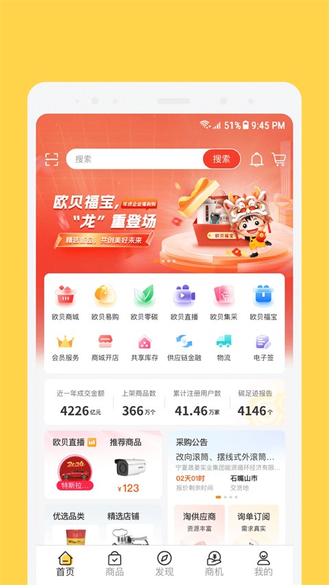 下载并打开欧贝App后,进入“我的”页面,完成企业或个人账号注册与登录操作,登录成功后即可使用采购与报价相关功能模块。