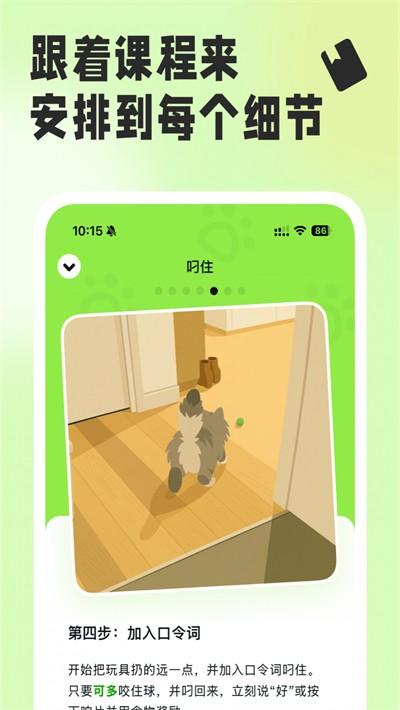 5、整理分层级口令练习内容,循序渐进完成实操练习,逐步掌握相处技巧,摸索合适的互动模式。