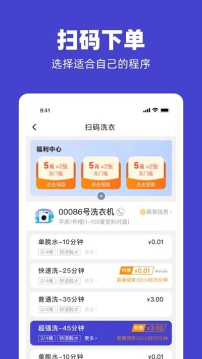 1、全流程线上化操作,告别硬币与线下排队,洗护使用更加省时省心。
