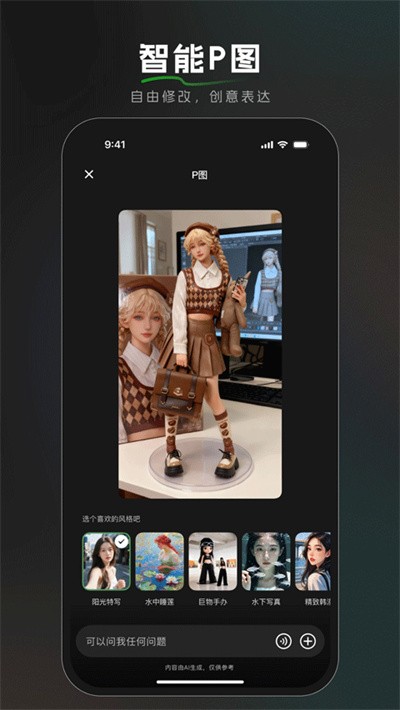2、AI绘图与智能修图功能结合,既能创作视觉内容,也能优化已有素材。