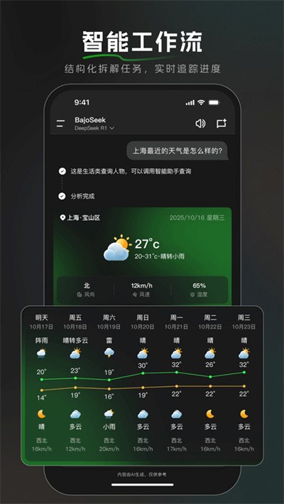 bajoseek官方版是一款集多功能于一体的智能AI大模型应用,致力于为不同场景提供高效便捷的智能支持。软件融合联网搜索与深度思考能力,能够快速理解问题并输出精准答案,无论是日常查询、学习辅助还是办公需求,都能轻松应对。同时还集成AI绘图、智能修图、拍照解题等多种实用工具,让信息获取与内容创作同步完成,显著提升效率。