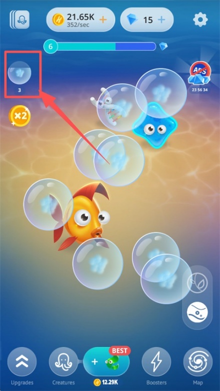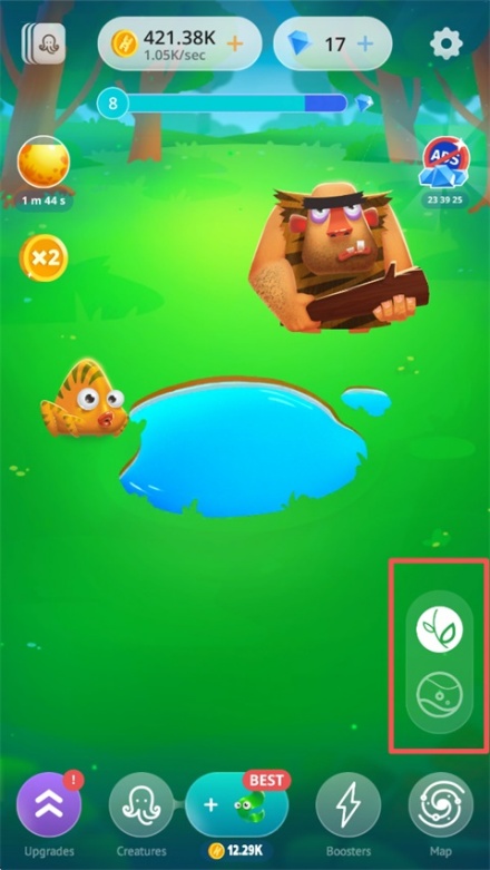 3、金币充足时优先强化“1st age bubble”,减少生物生成等待时间,提高产出节奏。