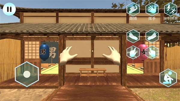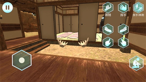 4、完成全部角色选定后,人物就会出现在户外场景当中,右侧各类动作按钮可操控角色挥手跟随等多种互动动作。