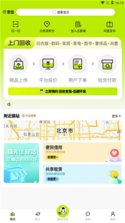 2、进入首页后可查看垃圾回收、旧衣物回收等多种分类处理功能入口。
