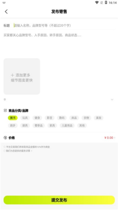 5、使用闲置交易功能,可将不需要的物品发布至平台进行转让售卖。