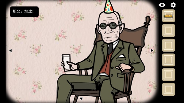 4、将酒递给爷爷,对话后得知他需要冰块。