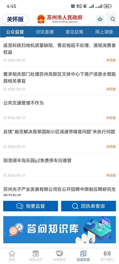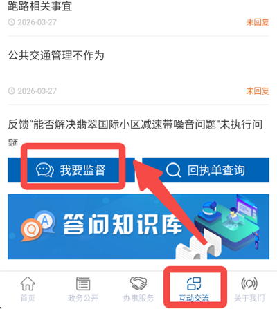 1、进入互动交流板块后点击我要监督功能入口进入填写页面。