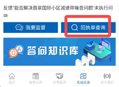 3、在回执单查询中输入回执单号即可查看处理进度与回复结果。