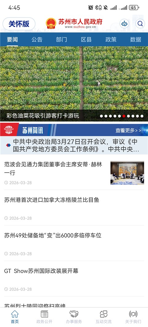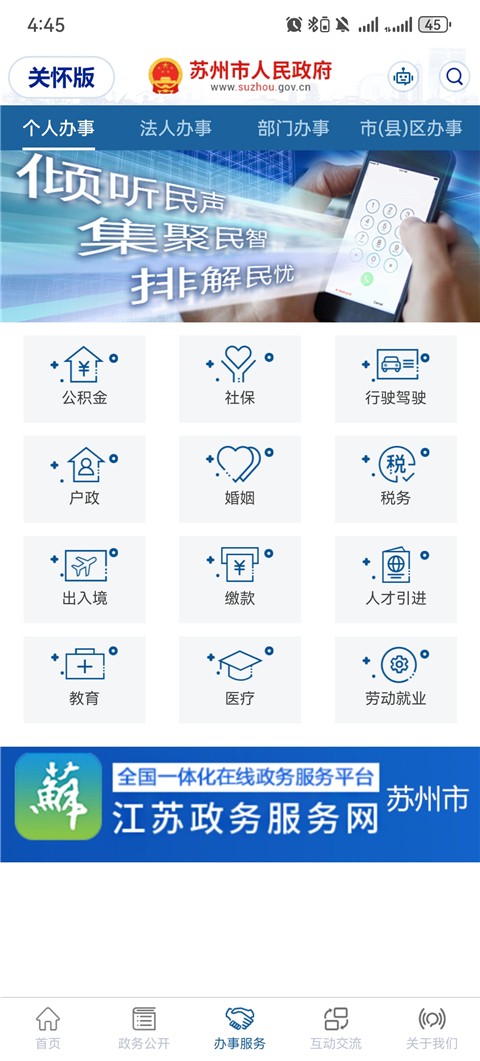 苏州市政府是一款集政务服务、便民办事与城市信息查询于一体的综合型官方服务平台软件,围绕数字政务与智慧城市建设进行功能整合,致力于提升市民办事效率与政务服务体验,打造统一高效的线上服务入口。平台结合多部门数据协同与线上办理流程,强化事项办理效率与信息公开透明度,优化审批查询与业务办理路径,突出政务服务的便捷性与规范性,实现“让数据多跑路,让群众少跑腿”的服务目标。应用界面结构清晰,功能分类明确,支持办事指南查询、政策信息获取与线上业务办理等多种服务形式,提升整体使用流畅度,为市民提供更加高效便捷的一站式政务服务体验。