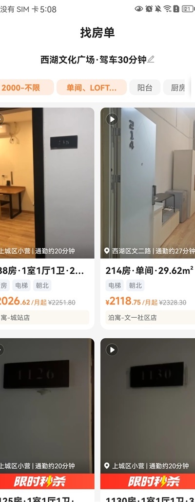 4、系统会筛选并展示符合条件的房源列表供用户选择。