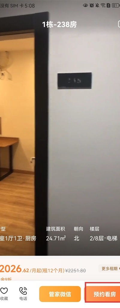 5、进入心仪房源详情页,点击“预约看房”功能按钮。