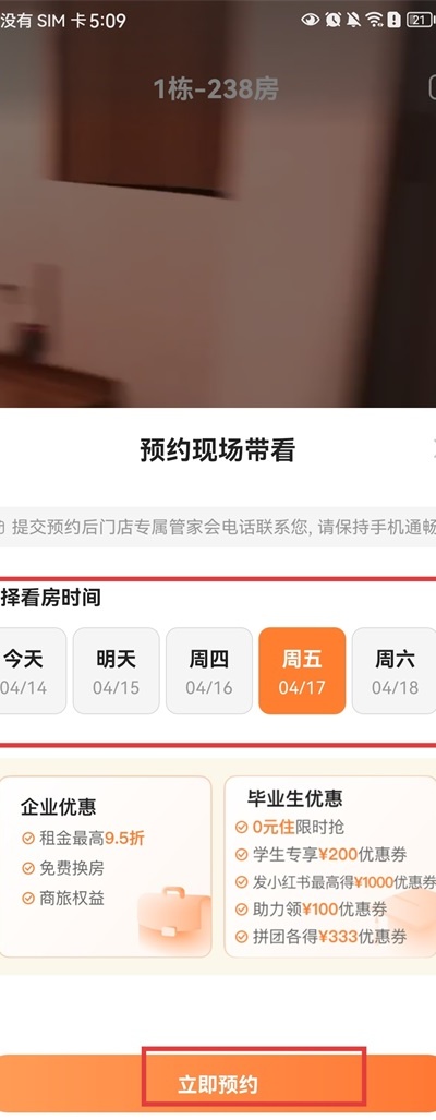 6、选择合适的时间段并提交,即可完成看房预约。