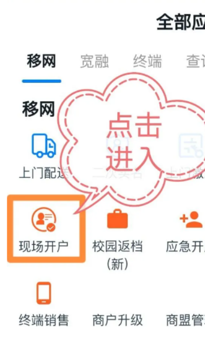 1、进入页面后点击更多应用,选择现场开户功能进入办理界面。