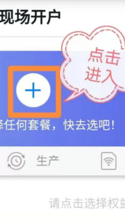 2、点击“+”号添加开户信息,进入套餐选择页面。
