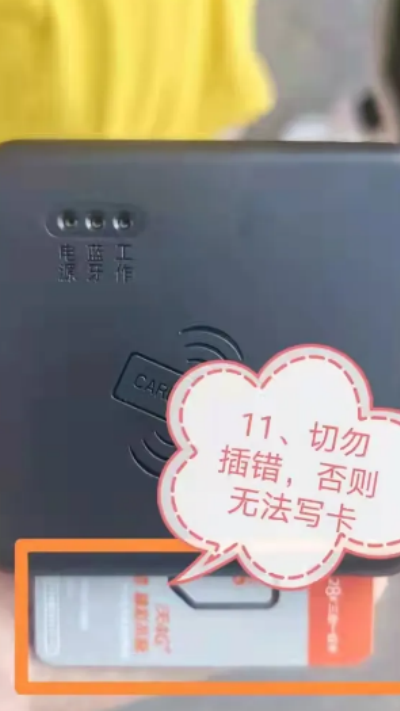 12、写卡前将联通白卡正确插入开卡设备,避免插错导致写卡失败。