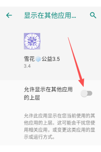 1、打开雪花直装软件,同意【允许显示在其他应用的上层】权限。