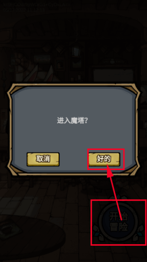 1、进入冒险流程后,通过“开始冒险”进入魔塔关卡,开启探索与战斗循环,逐步推进当前层级进度。