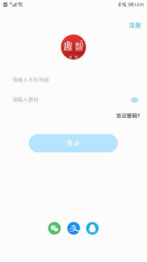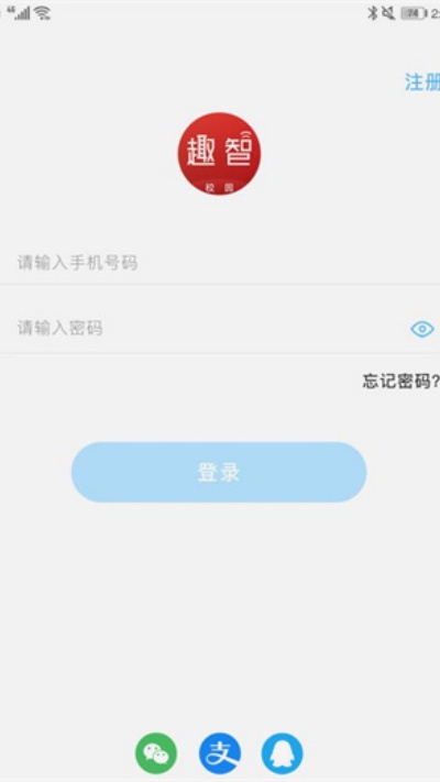 1、下载趣智校园app并完成账号注册与登录进入系统首页。