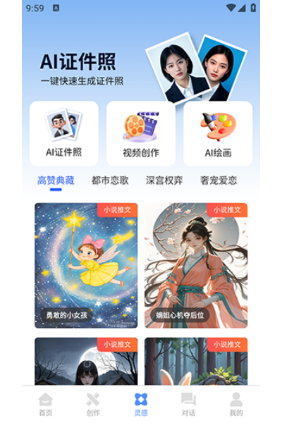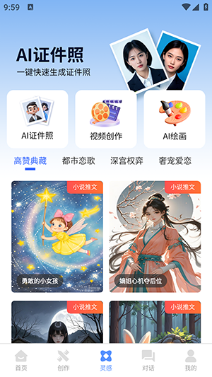 3、进入灵感板块,内置多个AI模板,直接点击即可套用。