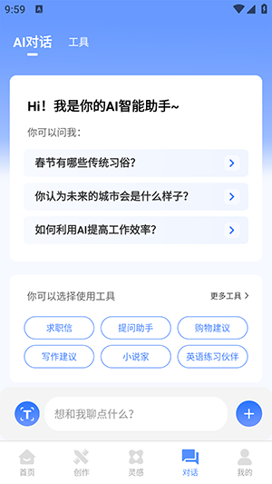 4、切换至AI对话界面,根据自身需求选择对应服务选项。