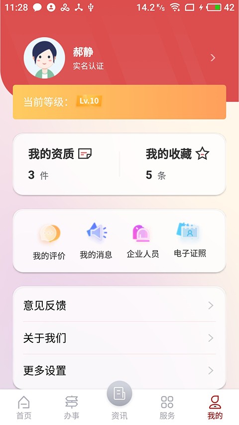 2、登录成功后在首页找到电子证照模块,点击进入后可进行电子证照申领与相关管理操作。