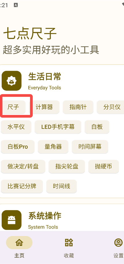 1、打开七点尺子App,在首页点击“尺子”功能进入测量界面。