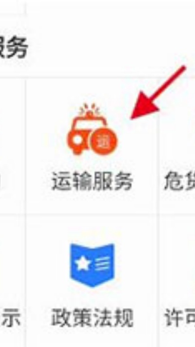 4、进入服务页面选择政务服务找到运输服务模块点击进入对应功能界面。