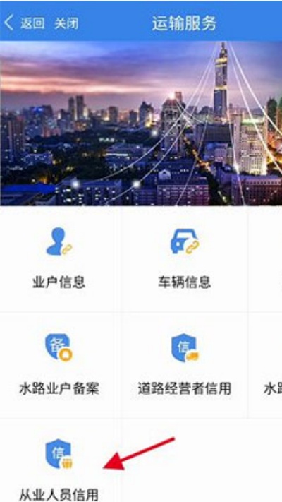 5、在运输服务中进入从业人员信用模块完成注册信息填写并提交审核流程。