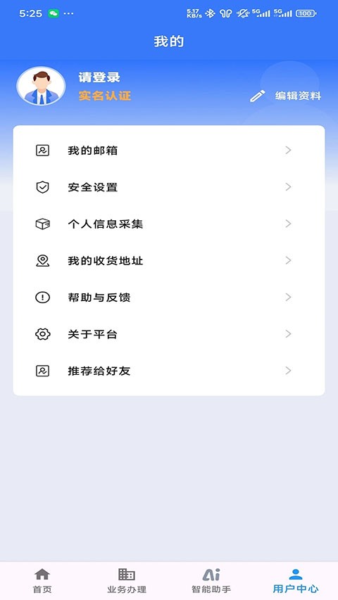 2、登录成功后进入实名认证页面填写相关信息并点击认证完成身份验证。