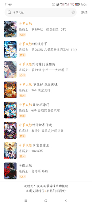 3、在弹出的相关搜索结果页面中,点击目标漫画封面进入详情页;
