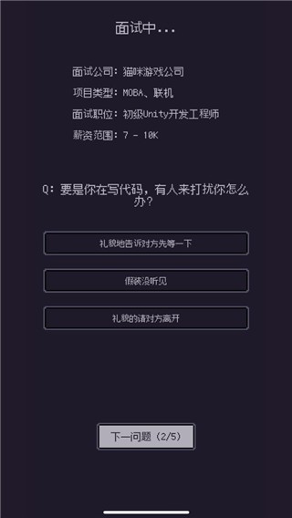 游戏码农官方版是一款文字模拟经营手游,以都市职场生活为主题,围绕求职、租房、成长与收入展开完整发展过程。开局从普通码农身份起步,需要完善简历、投递岗位、争取入职机会,体验真实求职节奏与职业竞争环境。