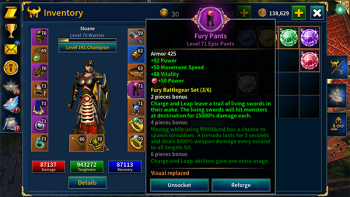 3、战士练级路线以高效率刷图为核心方向,防御者与黑色守卫套装组合可提升生存与输出能力,核心技能以旋风斩与剑盾猛攻为主,通过技能循环快速清理关卡怪物,适合用于经验积累与等级提升阶段。