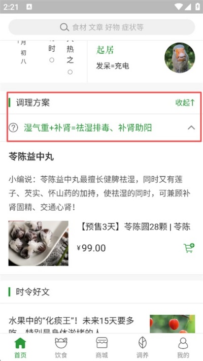 4、完成健康档案建立后系统自动推荐对应调理方案与建议内容。