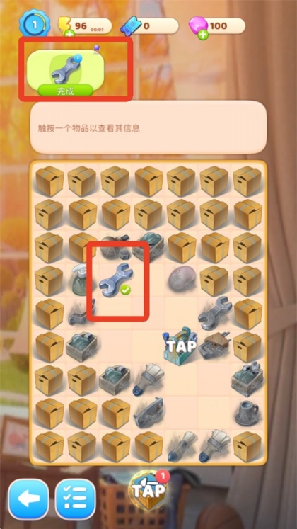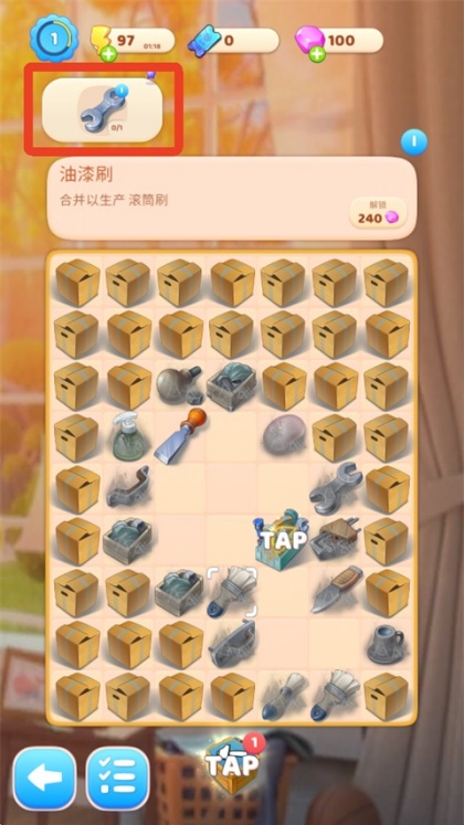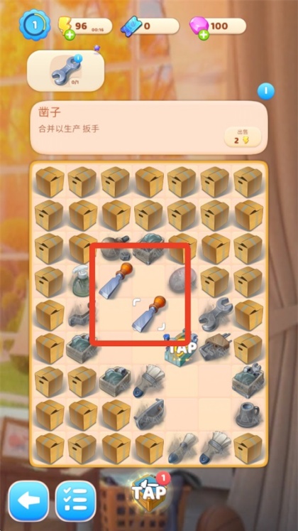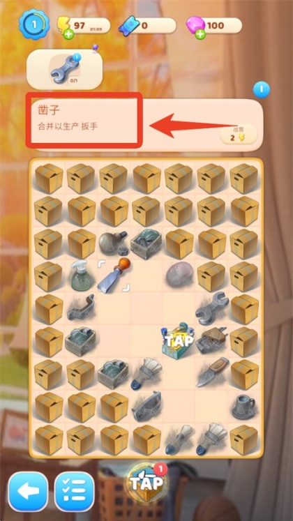 1、先查看目标栏所需合成工具,明确当前关卡需要制作的物品类型,例如扳手。