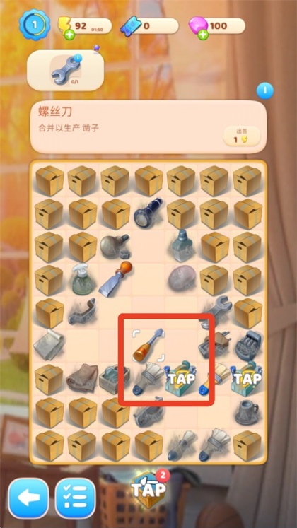 4、可移动工具支持拖拽合成,相同工具叠放后自动升级,例如刀可合成螺丝刀并继续进阶。