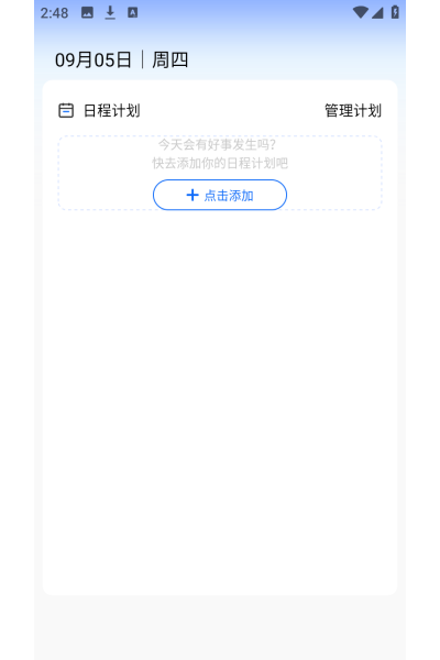 2、自动跳转至日程计划管理页,点击页面醒目位置的+快捷添加按钮。