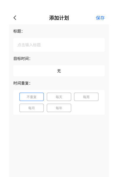 3、进入添加计划编辑页,填写计划标题、设定创作时间、标注创作目标,核对无误后点击右上角保存,即可完成专属拼豆创作日程添加。