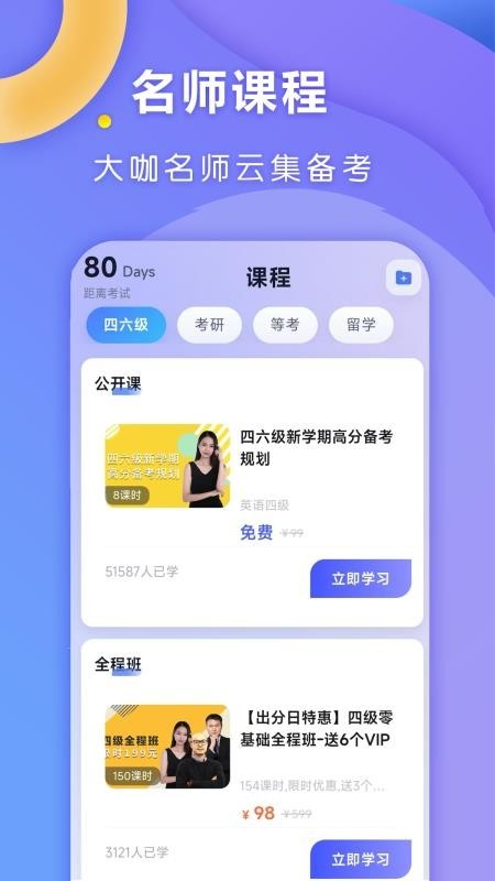 无需花钱报线下培训班,考生可直接跟着名师学习四六级应试技巧,精准把握考点,短时间内实现高效提分,降低备考成本。