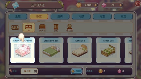 2、任务委托系统提供不同客户需求,根据目标完成对应房间设计并获取奖励。