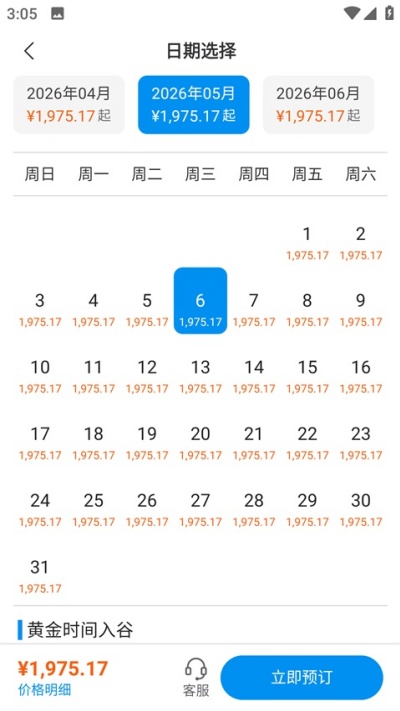 3、进入景点详情页面后根据行程安排选择合适的购买日期或出游时间。