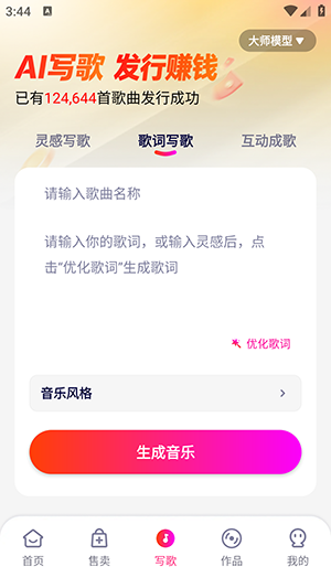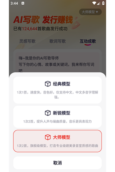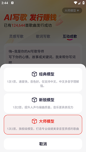 1、打开米多写歌,进入写歌页面,选择心仪的AI模型。