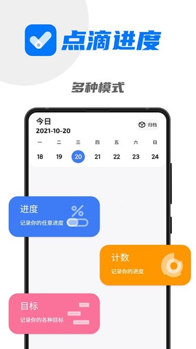 点滴进度集合目标规划、进度追踪、次数计数、习惯打卡、倒数日提醒多项实用功能,极简卡片设计搭配丰富个性化设置,兼顾颜值与实用性,数据同步、历史检索、悬浮专注、成果分享等附加功能完善,适配学习备考、运动健身、日常习惯培养等多种场景,是帮助用户自律精进、管理日常计划的轻量化生产力工具。
