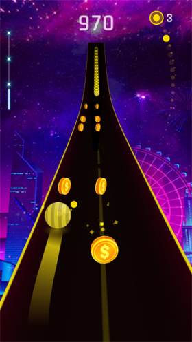 1、赛道结构随音乐节奏变化不断调整,路径方向与节拍同步变化,行进过程中需要根据节奏判断移动时机,形成节奏与操作结合的玩法结构。