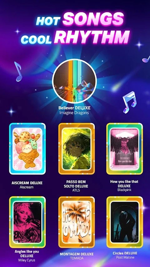 3、关卡音乐类型覆盖多种风格,不同曲目对应不同节奏速度与变化方式,使每一段挑战都具有独立节奏结构与视觉表现方式。