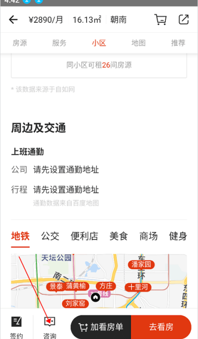 3、发起咨询 在房源详情页点击咨询入口进入与管家沟通的对话界面。