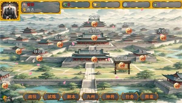 3、进入内政界面后,可进行资源收集、人才招募与兵力建设,为后续发展打下基础。