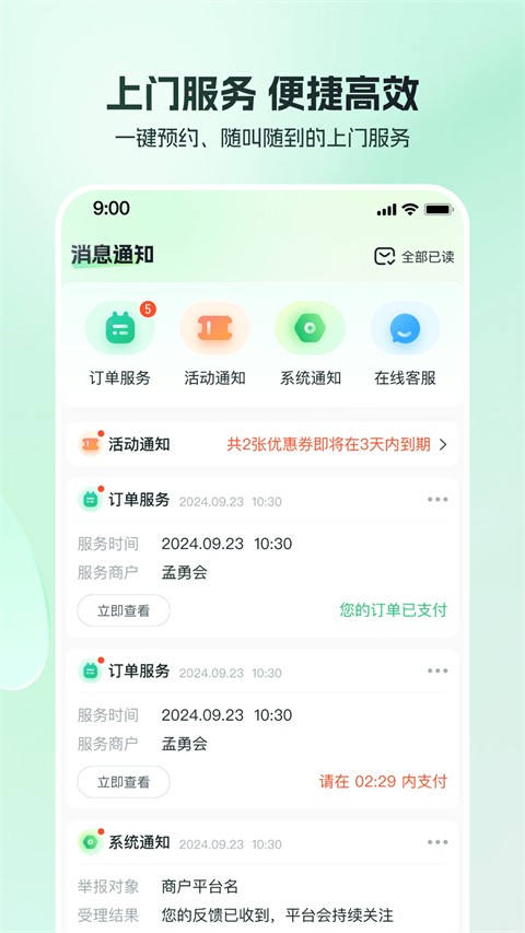 1、预约便捷:用户可通过App快速选择服务项目、时间与地点并一键下单支付,实现全流程线上操作,大幅提升预约效率与使用便利程度体验。