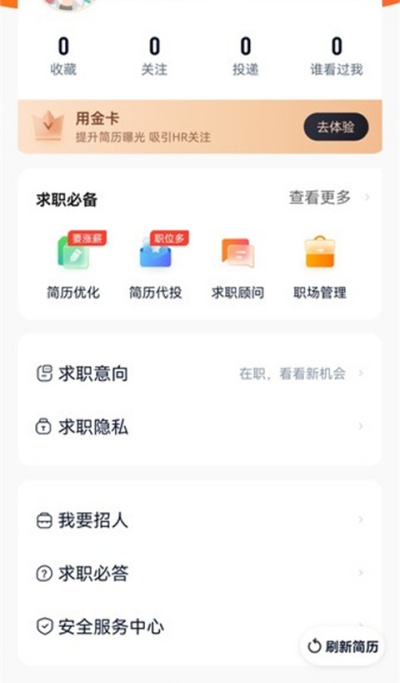 1、进入个人中心 打开猎聘app后进入我的页面找到求职隐私设置入口。