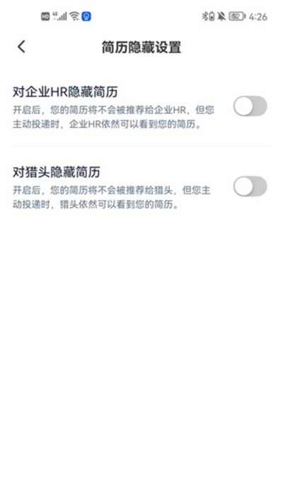 3、选择隐藏状态 根据自身需求开启隐藏即可完成简历关闭保护隐私。