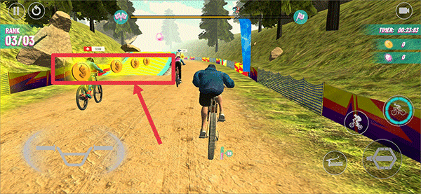 4、比赛途中赛道上会散落大量金币,玩家在骑行过程中可主动收集,用于后续资源积累与功能解锁。